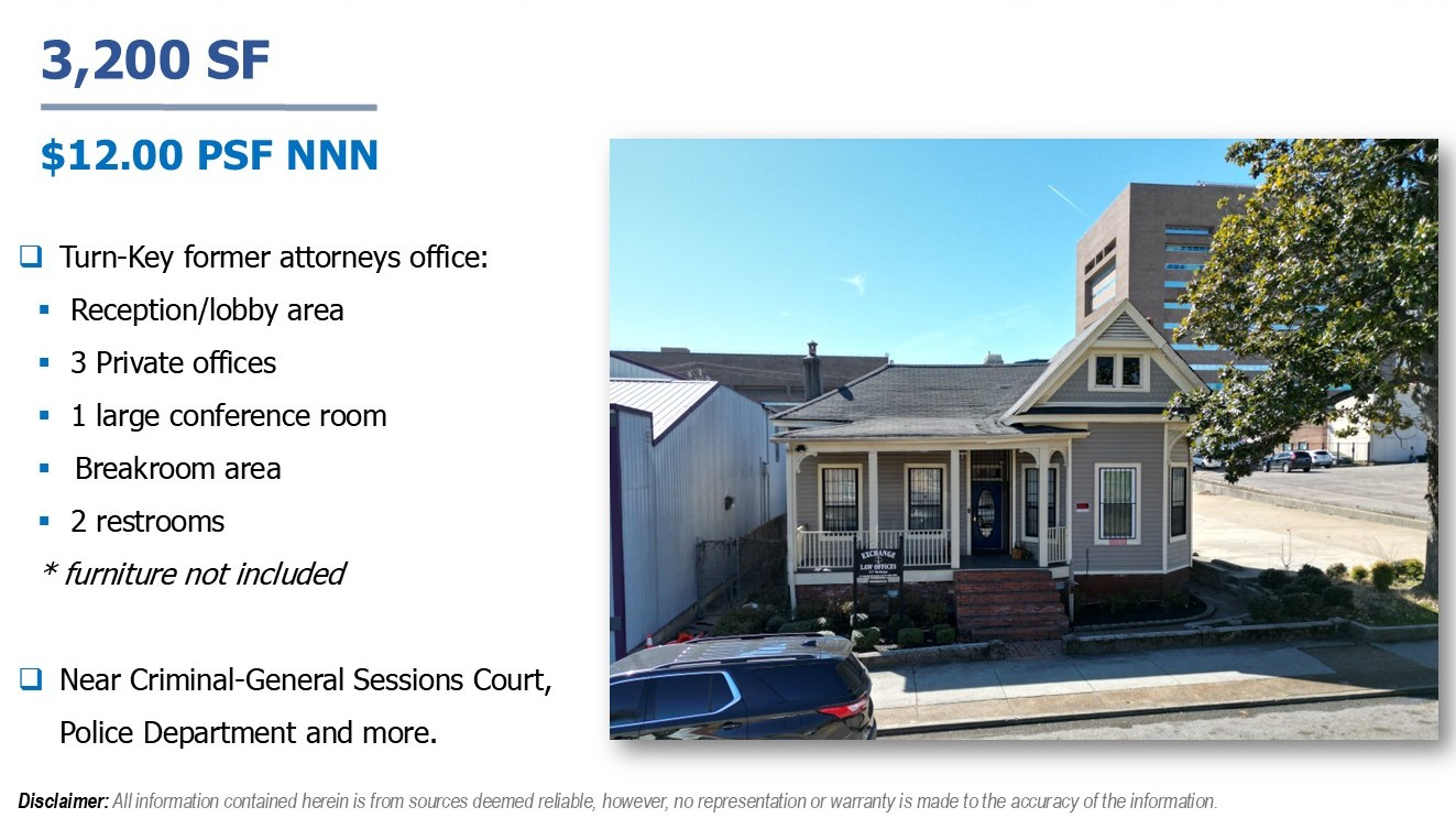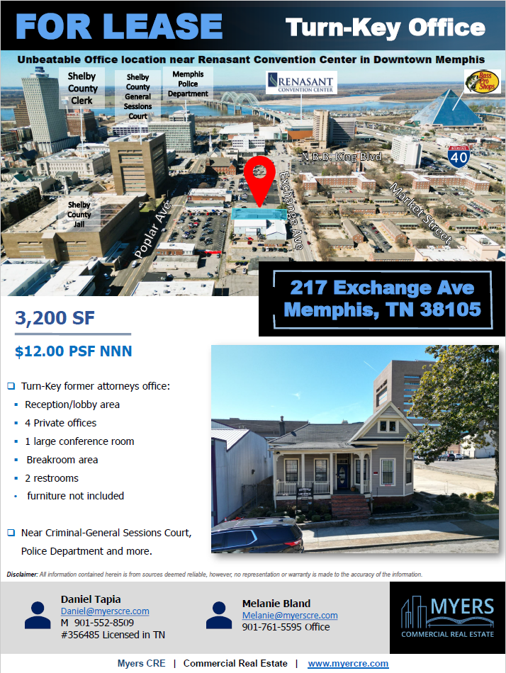Located within close proximity to the Renasant Convention Center, the Shelby County court system, and the Memphis Police Department, the property offers a strategic location for legal professionals, consultants, and service-based businesses seeking accessibility and visibility in Downtown Memphis.