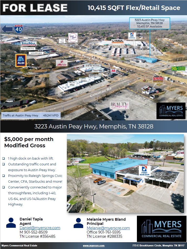 10,415 SQFT Flex/Retail Space next to First Horizon.