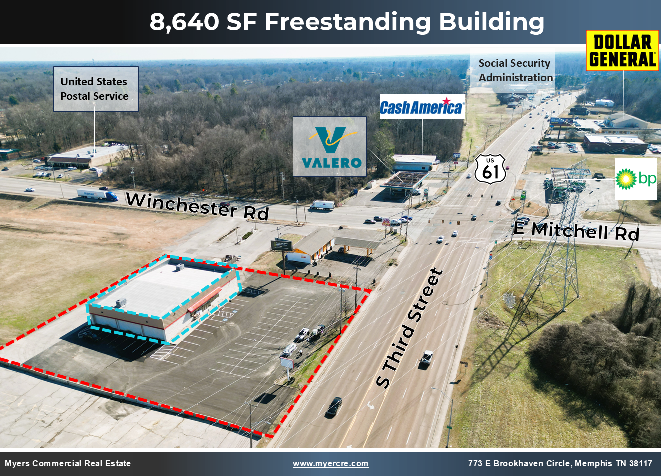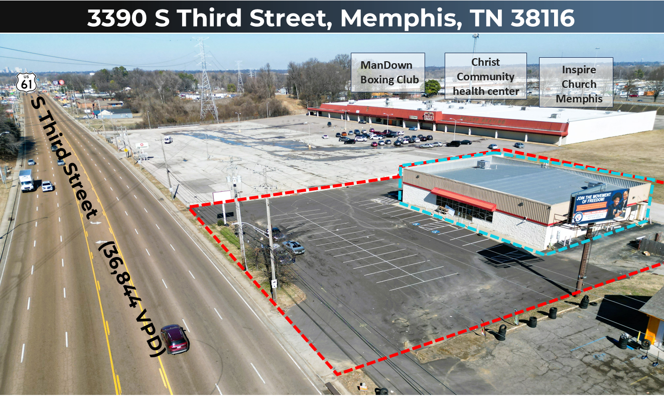Now available for lease: an 8,640-square-foot freestanding commercial building located at 3390 S Third St, Memphis, TN 38109. Situated along highly trafficked US-61, this property benefits from exceptional visibility with approximately 36,844 vehicles per day, positioning your business directly in the path of consistent consumer traffic.