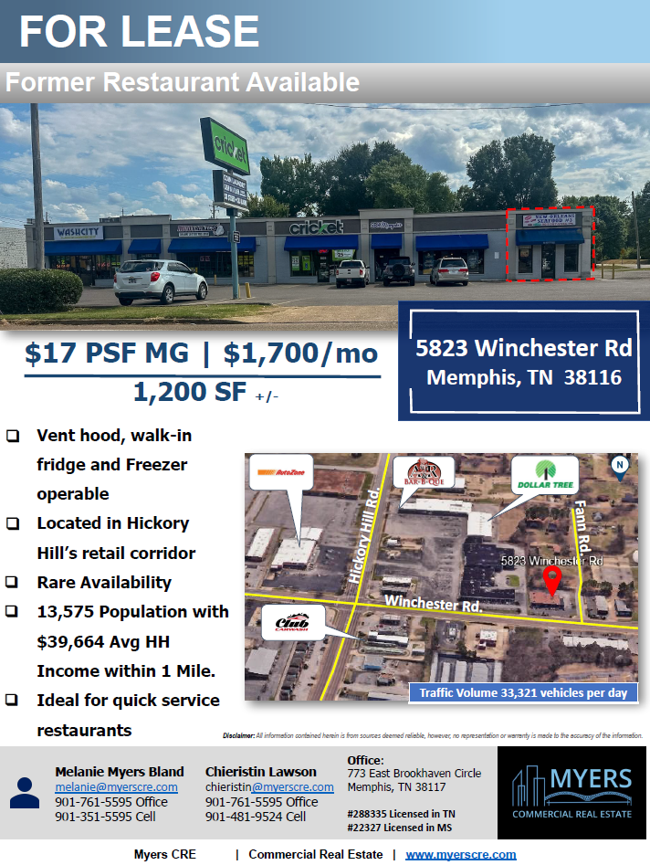 2nd generation small restaurant space available, ideal for quick-service or takeout concepts. The previous owner installed all new kitchen equipment at move-in (2017), which has been well maintained and is in good working condition. The space offers a functional layout, minimizing startup costs & allowing for a quicker launch. Located on busy Winchester Road with strong traffic counts and excellent visibility, this site provides a great opportunity for an operator seeking a turnkey restaurant.