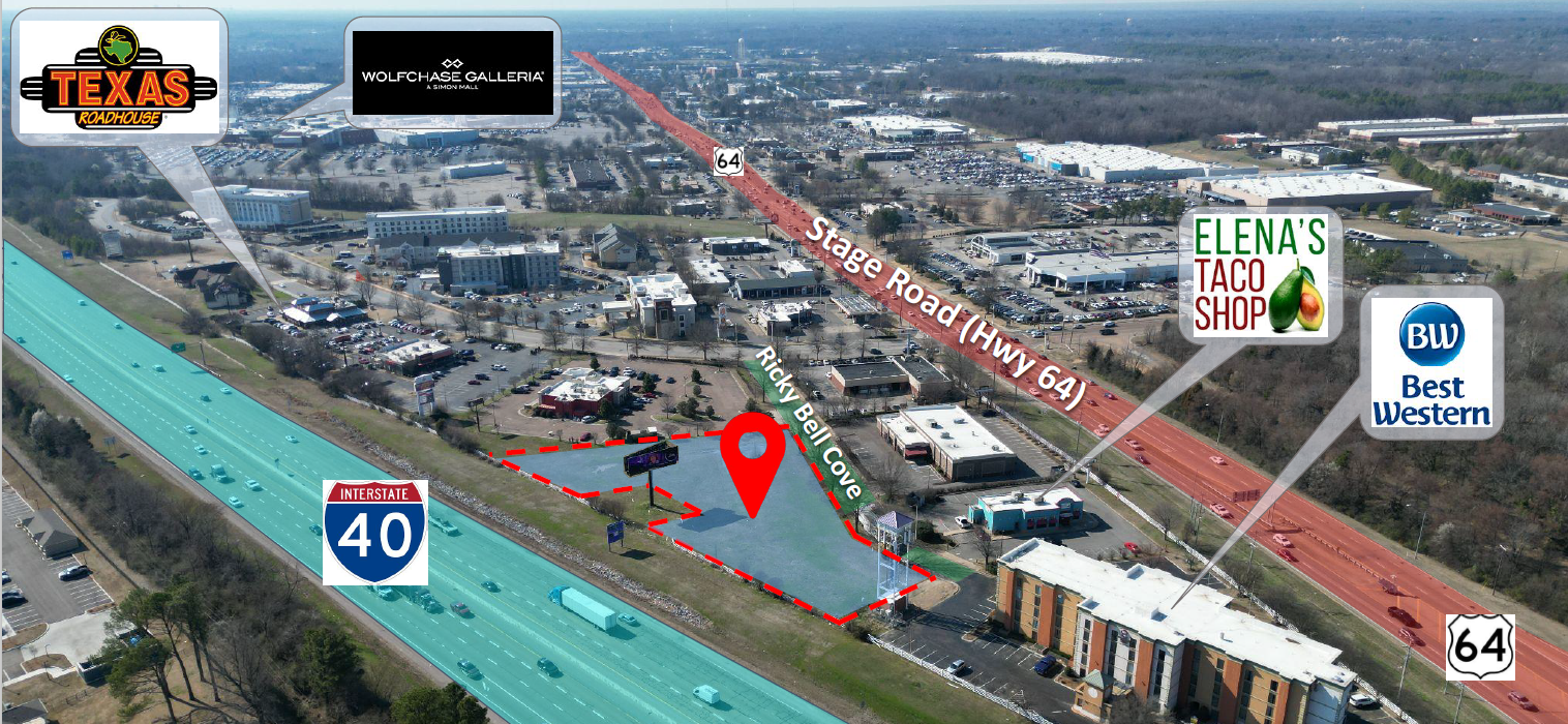 I-40 and Hwy 64 (Stage Rd), close to Wolfchase Galleria Mall.