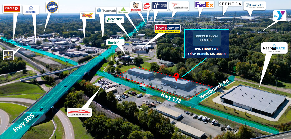 Located in the heart of Olive Branch’s booming commercial corridor, this 2.27-acre center offers ±20,297 SF of gross leasable area with direct frontage on Old Highway 78 and seamless access to Highway 302 (30,224 VPD). Built in 2019, the property features modern construction with minimal maintenance needs—ideal for office, warehouse, and retail tenants seeking quality and convenience.