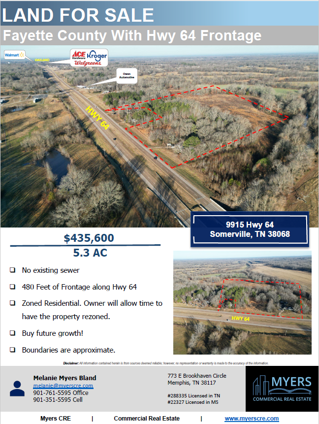 Excellent opportunity to invest in the future of Fayette County. 480 feet of frontage along Hwy 64 in between Oakland and Somerville.